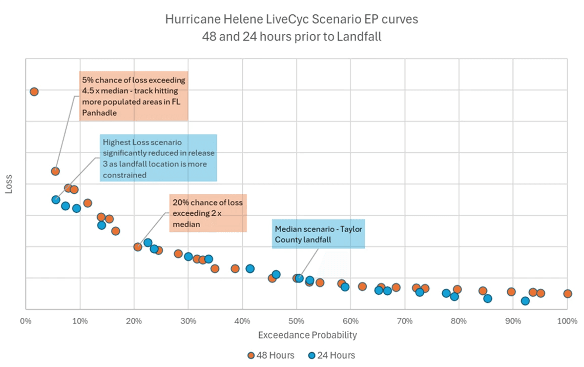 Figure 4: 48- and 24-hour forecast loss distribution for Hurricane Helene (2024)
