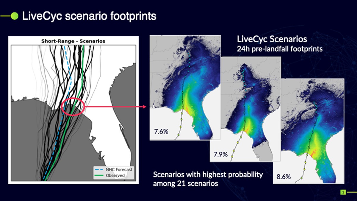 Starting from LiveCyc scenarios and their high-resolution representative footprints, our customers can objectively quantify the size of their potential loss distribution, with daily updates right up to landfall: