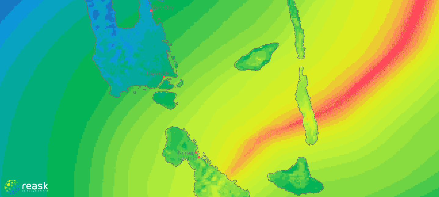 Figure 1: Cyclone Lola expected wind speeds across Vanuatu modelled by Reask’s Metryc.